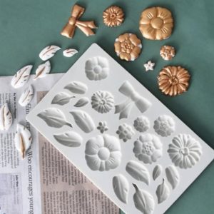 Molde fondant grande hojas flor lazo