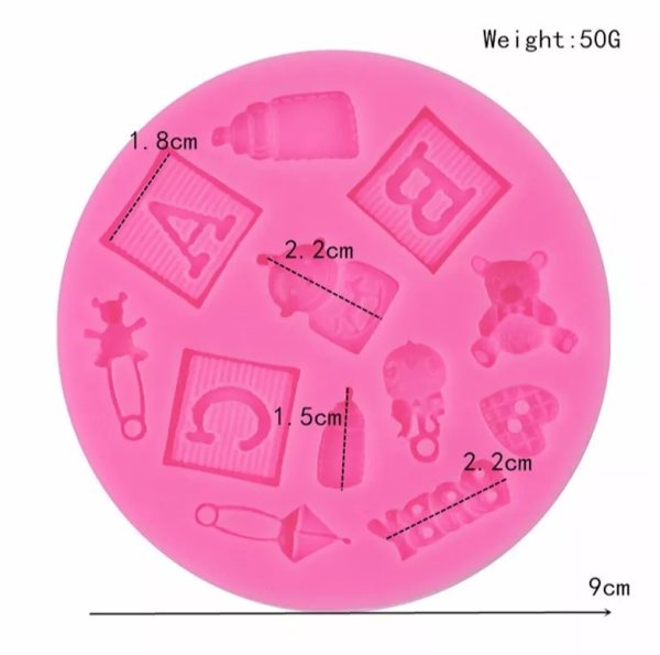 Molde fondant baby shower variedad abc, osito, baby