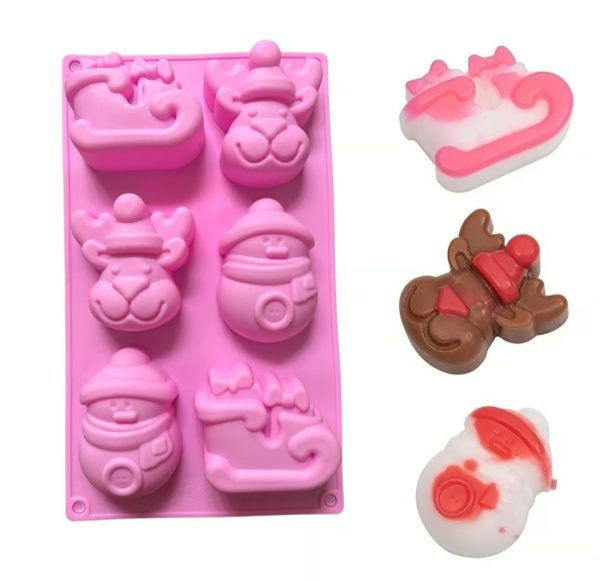 Molde silicona navidad reno, hombre de nieve y trineo