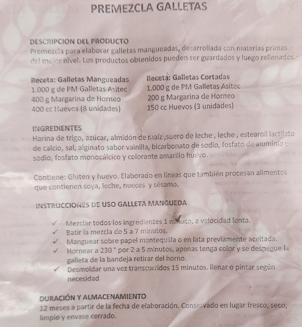 Premezcla en polvo para hacer galletas mangueadas o cortadas.