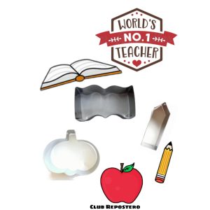 Set cortadores día del profesor lapiz, libro, manzana
