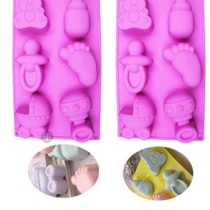 Molde silicona baby shower oso, mamadera, chupete, pie, coche, cascabel