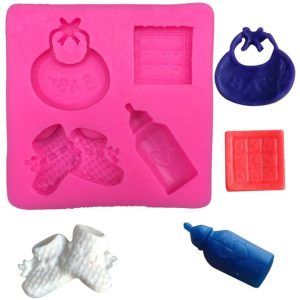 Molde fondant Baby Shower Mamadera Zapatos Babero Cuadrado